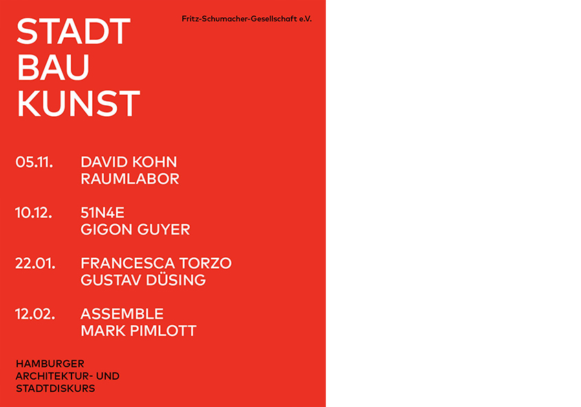 Unter der Überschrift FOOTPRINTS berichten an vier Abenden junge Büros aus Bremen, Dresden, Leipzig, Köln und Hamburg – den Wirkungsorten Schumachers – über ihr Werk. Die Veranstaltungen findet an wechselnden Orten in Hamburg statt. -