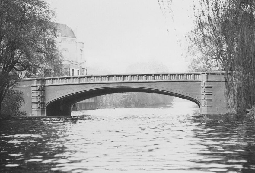 Die Skagerrakbrücke überbrückt einen Abzweig des kanalisierten Alsterlaufes im Verlauf der Rathenaustraße.